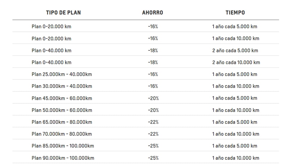 En el mantenimiento de 5.000 kilómetros el cliente podrá realizarlo con hasta 6.500 kilómetros recorridos.